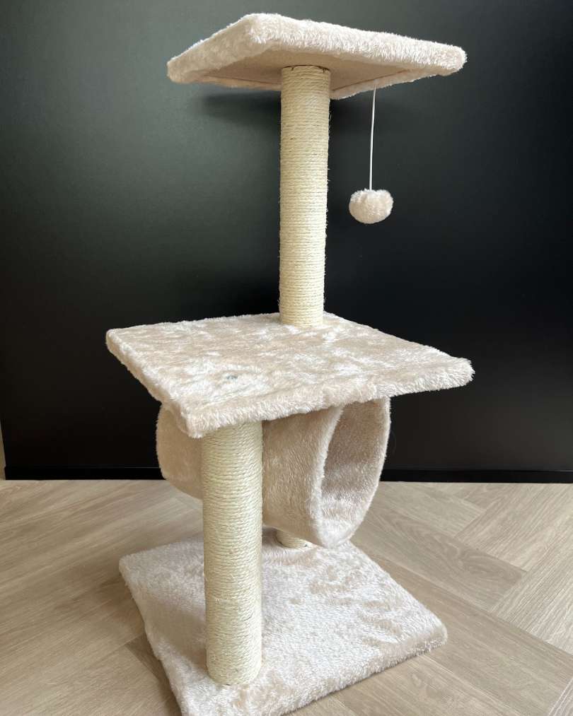 Geef je kitten de ultieme speel- en rustervaring met deze veelzijdige kattenpaal Kiki. Met afmetingen van 30 x 30 x 65 cm (L x B x H) past hij gemakkelijk in elke kamer. Deze kattenpaal speciaal geschikt voor kittens heeft een leuk hangend balletje, perfect om je kitten bezig te houden. Daarnaast zijn er twee comfortabele ligplateau’s, ideaal voor je kitten om zich op terug te trekken en een dutje te doen. De krabpalen zijn perfect voor het scherp houden van de nagels, wat helpt voorkomen dat je meubels beschadigd raken.