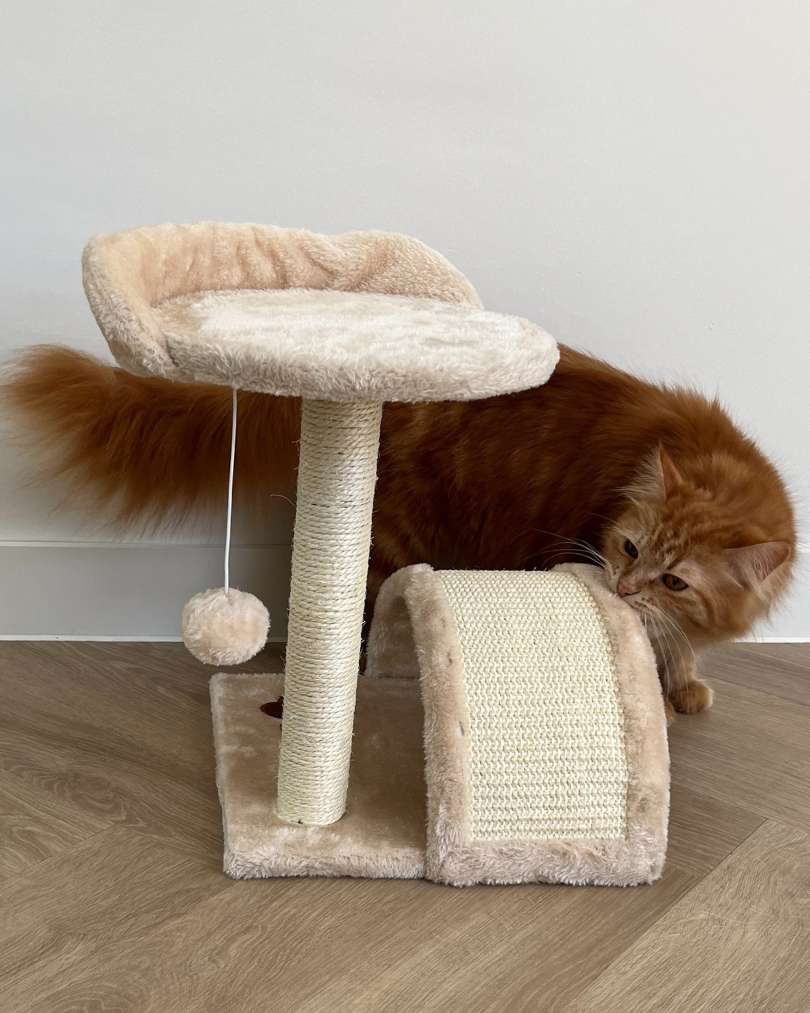Geef je kitten de perfecte plek om te spelen, krabben en uitrusten met deze veelzijdige kittenpaal Lucy. Met compacte afmetingen van 30 x 30 x 40 cm (L x B x H) past hij gemakkelijk in elke kamer. Deze kittenpaal biedt niet alleen een leuke speelervaring met het hangende balletje, maar ook een comfortabele lig plek voor je kitten om heerlijk te ontspannen. De krabbrug en de paal van de krabpaal Lucy zijn ideaal om de nagels van je kitten scherp te houden, wat helpt voorkomen dat je meubels beschadigd raken.